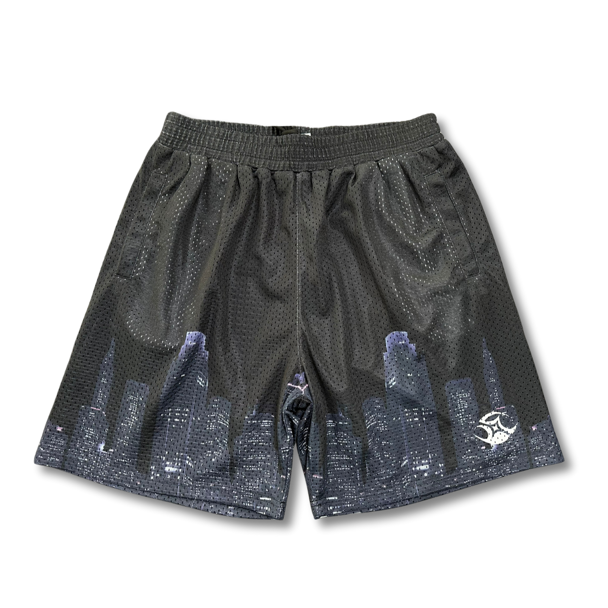 Crafted from high-quality double-layered mesh fabric, these shorts feature a bold city skyline design that captures the energy of the streets after dark. Designed for both performance and everyday style, with a relaxed fit and standout details.